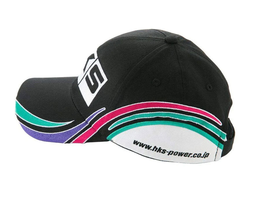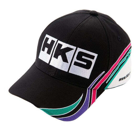 This cap has HKS logo is in front, HKS oil colour stripe on its left side, and HKS URL shown thereunder.